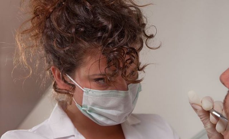 Arzthelferin mit offener Bluse